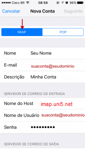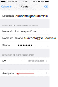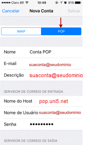 Configurando recebimento de email no iPhone (iOS 10) por POP