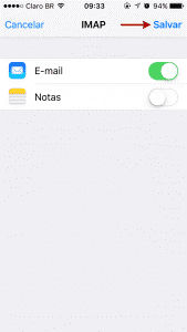 Finalize a configuração tocando em Salvar. Pronto! Sua conta POP foi configurada.